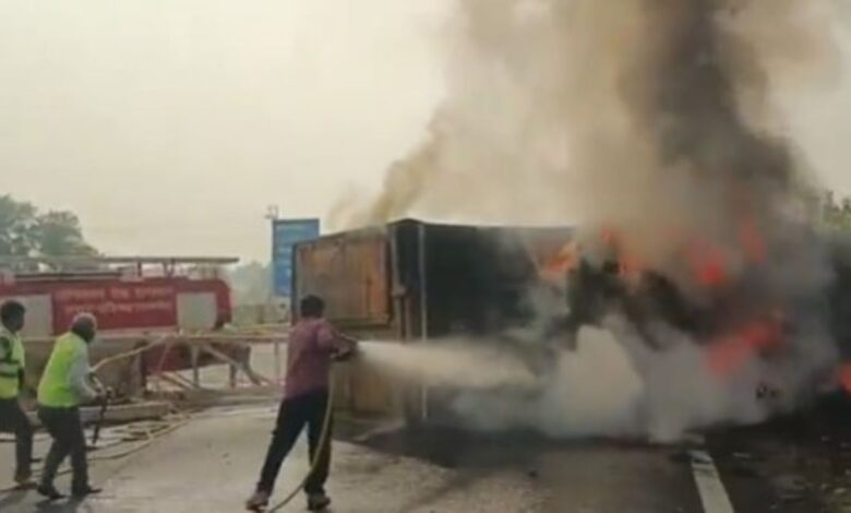 Delhi-Mumbai Expressway : राजस्थान के दौसा में दिल्ली–मुंबई एक्सप्रेसवे पर दर्दनाक हादसा हुआ है। एक बेकाबू कंटेनर एलईडी पोल से टकराया और जोरदार धमाका हुआ। डूंगरपुर इंटरचेंज के पास टायर फटने से कंटेनर अनियंत्रित हो गया। हादसे में ड्राइवर की मृत्यु हो गई है।