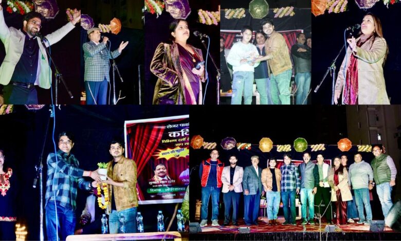 Kavi Sammelan : लेज़र पार्क सोसायटी में कल शाम एक भव्य कवि सम्मेलन का सफल आयोजन किया गया। इस अवसर पर प्रख्यात कवि चेतन चर्चित, सुनहरी लाल तुरंत, स्वदेश यादव एवं ज्योति उपाध्याय ने अपनी हास्य, श्रृंगार तथा वीर रस से परिपूर्ण कविताओं द्वारा श्रोताओं को मंत्रमुग्ध कर दिया।